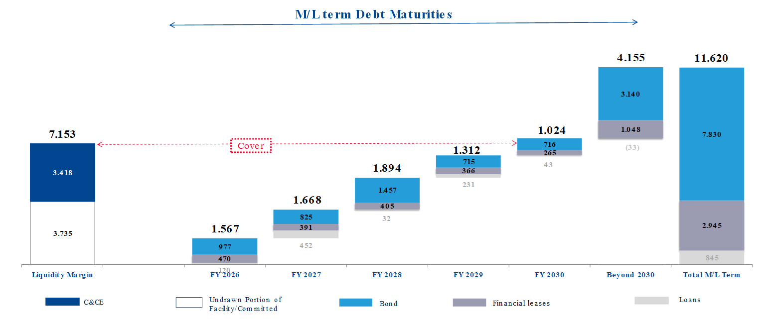 (*) In accordance with the contract signed, the Banks have committed to make the funds available on demand (with at least 3 days’ notice). As this is a “Committed” line, the banks have no mechanisms in place not to honor the request for funds made by the Company, without prejudice to the market standard early mandatory cancellation clauses (Natural contract expiry, Change in control, Borrower illegality, Events of default, each as defined in the contract).