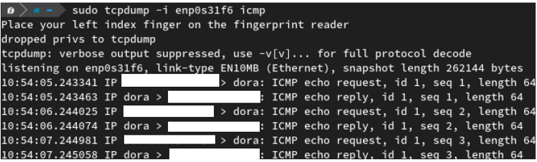 Then the command is executed (please note dora is the hostname of the our attacker machine).