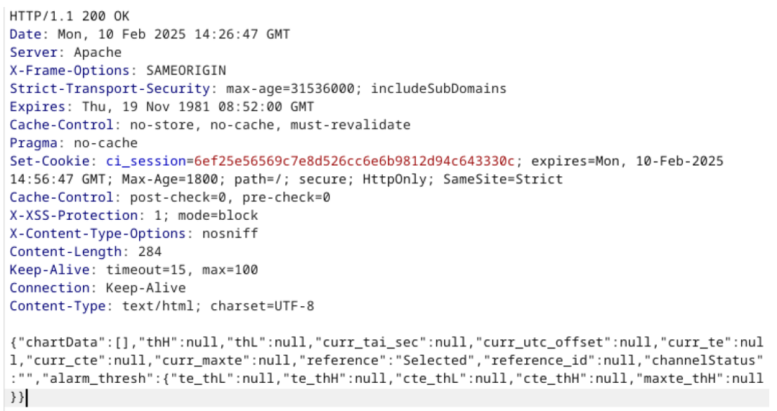 It is possible to perform an authenticated SQL injection request on the web resource 'get_chart_data' in the parameter 'channelName'. The device concatenates user input in the SQL query (SQLite) and execute it.