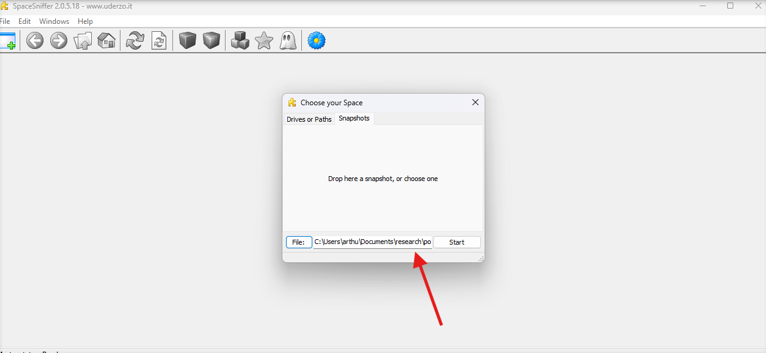 Figura 4 -  Importing the crafted snapshot file in SpaceSniffer UI